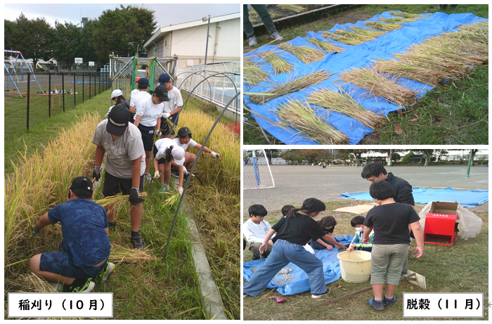 写真は、子供たちの活動の様子です。今後、収穫したお米はみんなで分け合って持ち帰ります。
