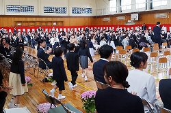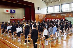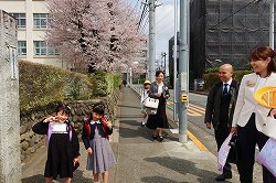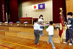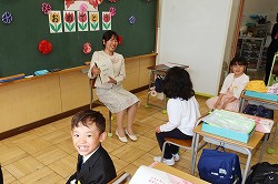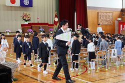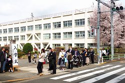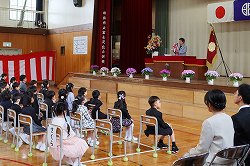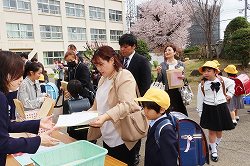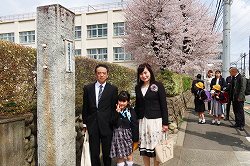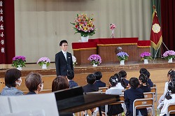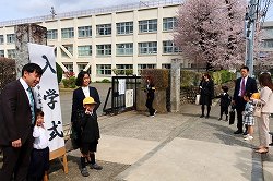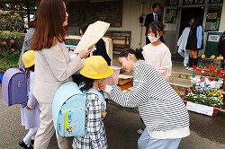 | 新1年生の保護者の皆様、本日はお子様のご入学おめでとうございます。天候にも恵まれ、無事お迎えすることができ安堵しております。職員一同、責任を持って6年間お預かりいたしますので、よろしくお願い申し上げます。 |