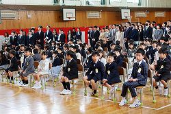 | お祝いの言葉。担任紹介。しっかり聴いています。 |