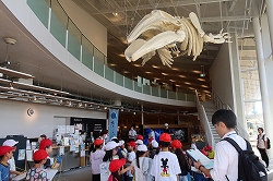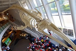 | 最初の見学は、アキシマエンシス。クジラホールで、職員の皆様と13.5mのアキシマクジラが出迎えてくれました。 |