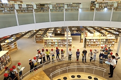 | 昭島市民図書館。本と情報を仲立ちとして人が集い、つながり、新たな価値を創造する場を目指しているそうです。 |