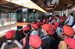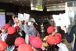 | 2年生は、初めての電車での移動でした。ユニバーサルデザインの表示を見ながらしっかり行動します。 |
