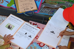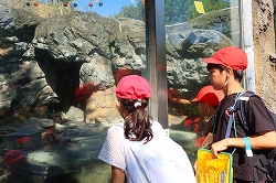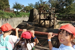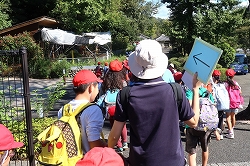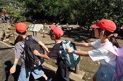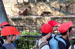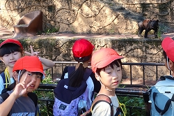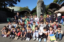 | 2年生、初のグループ行動。園内マップを参考に、目的の動物とビンゴにも挑戦。みんな協力して上手に回ることができました。 |
