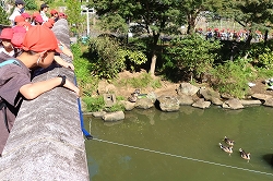 | ツキノワグマやニホンザルを観察して、トンボ橋を渡ります。 |