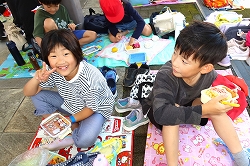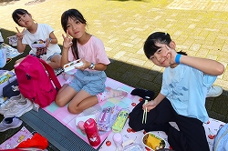 | お楽しみのお弁当タイム。日陰で食べることができました。 |