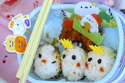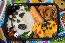 | ハローウィンの飾りを凝らしたお弁当。感謝、感謝。 |