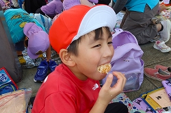 | 快晴に恵まれ、初めての電車、初めての班行動、子供たちがとても頑張って、さわやかな秋の一日になりました。早朝からのお弁当作りなど、保護者の皆さまの御協力ありがとうございました |