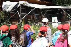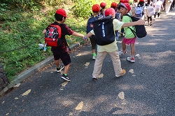 | 列になって見学しながら、「みんなの広場」に向かいました。 |
