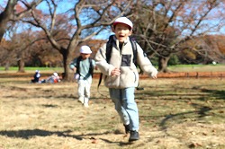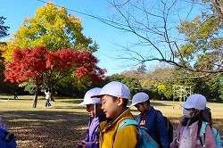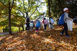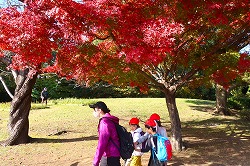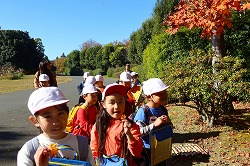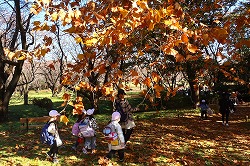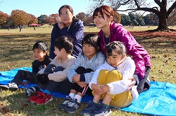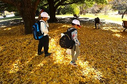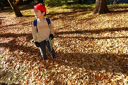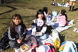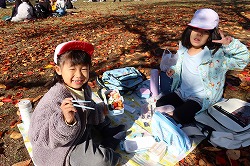 | 落ち葉を楽しみながら、おいしいお弁当タイムです。 |