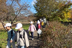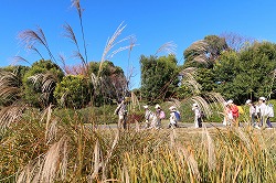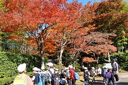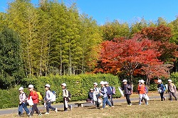 | 上空も、足元も、秋色を楽しみながら、ぐんぐん歩きます。 |