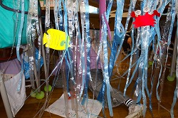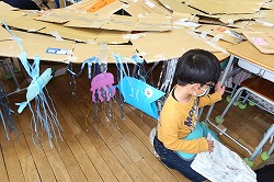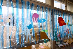 | 5年1組「海Q迷路」。海の世界の迷路をしながら、環境につて楽しく学べるクイズに答えます。 |