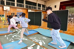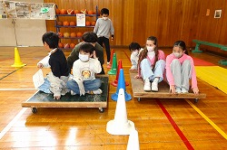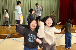 | 2年1組「人間すごろく、ボウリング、ペットボトルフリップ」。楽しいゲームが勢揃いです。 |