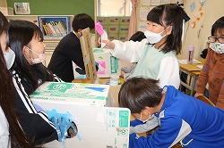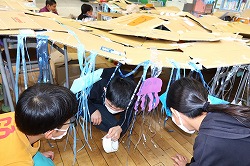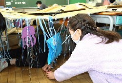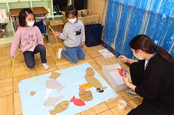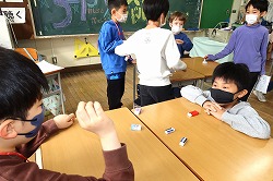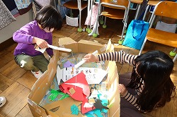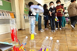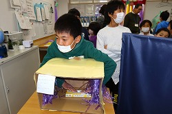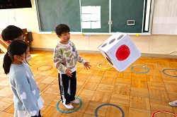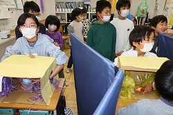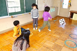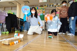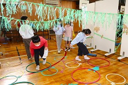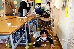 | 2年2組「めいろ、なげなわ、はこの中身はなんだろう?」。遊びがたくさんつまってます。 |