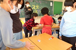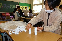 | 3年1組「32フェスティバル」 キャップつみつみ、消しゴム落とし、宝探し。 |