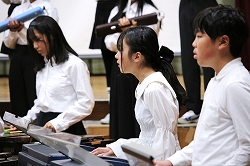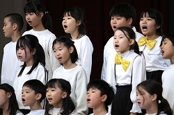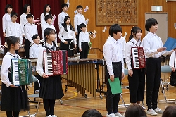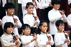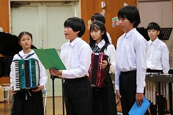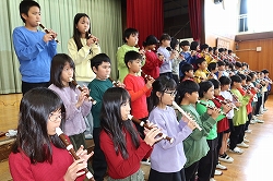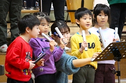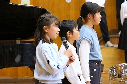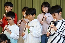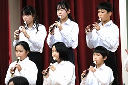 | 中学年になり、初めてがいっぱいの3年生。音楽会では、リコーダーでの演奏に初挑戦しました。初めは難しくても、みんなで練習してできるようになったら楽しい!仲間と協力し、楽しみながら歩んできたこれまでの『道』を曲にのせて表現します。成長した3年生の音楽をお楽しみください! はじめのことばmp3 |