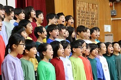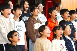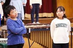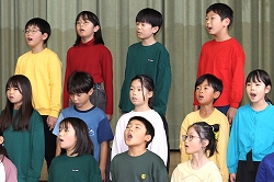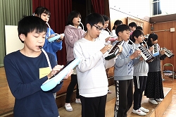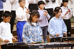 | 2年生は、友達を思いやり、力を合わせる「わ」をテーマに、みんなで協力しながら練習してきました。歌うときも楽器を演奏するときも、みんなでつながるとあたたかい「わ」が広がることを知りました。聴いてくださるみなさんにも、一人ひとりの思いが伝わるように、演奏します!