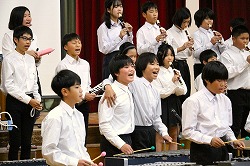 | 生き生きとした表情、心のこもった素敵な歌声と演奏、思いっきり音楽会を楽しんでいる気持ちが伝わってきました。舞台を降りてくる子供たちは、みんなニッコニコです。1,000名を超える皆様の御参観をいただき、今年も大成功の音楽会でした。心より感謝申し上げます。 |