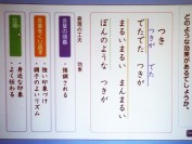 | 6年生の国語の授業です。比喩や反復、倒置など、人を引きつける表現技法について学びました。<左>デジタル教科書で、童謡「つき」の歌詩の表現の工夫と効果を考えました。<右>絵本「スイミー」の表現技法についてグループで学び合いました。