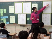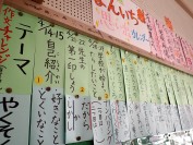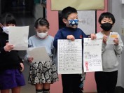 | 今年度も、あと6週間。進級・進学に向けて飛躍する大切な時期です。4年生の教室には、これまでの軌跡が分かりやすく掲示されています。<左>4年生が学習する漢字202文字。習得したら丸で囲んでいます。クリアーまであとわずか。<右>思い出カレンダー、作文チャレンジのテーマが並んでいます。