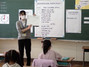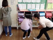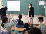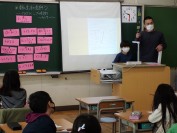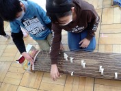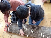 | 5年生の音楽で「箏」の学習をいていました。演奏していた「さくら」は、日本古来から伝わる音楽で、小学校の歌唱や器楽演奏な どで学習してきています。また、箏のもっとも基本的な調弦である平調子の曲であり、弦の跳躍 が少なく繰り返しの多いメロディーでできているため、親しみやすく、臆することなく演奏していました。 |