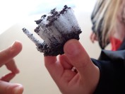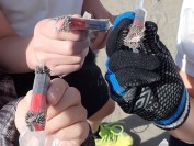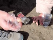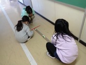 | 3年生の理科で磁石の不思議を学んでいます。前時の実験で、磁力の働くところに砂鉄の粉が引き寄せられる様子に興味津々だった子供たち。今日は校庭に出て、磁石で砂鉄集めをしました。校庭でも、砂場でもたくさんの砂鉄に夢中になっていました。