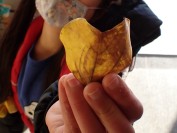 | 毎朝、昇降口で、子供たちがいろいろなものを見せてくれます。自然や生き物への興味関心が高いことは、豊かな心につながります。<左>霜柱です。霜柱を踏み歩く音と感触は心地良いですね。<右>ハート型の落ち葉を見付けて大喜びです。 |