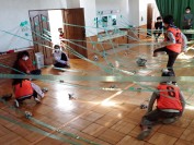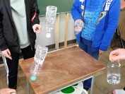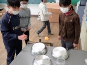 | 5年1組は、「ノーサウンドゲーム」と「神業チャレンジ」の2店です。<左>ノーサウンドでは、音を鳴らしてしまったら、即アウト。音が鳴る仕掛けがたくさん隠されていました。<右>神業は、まさに神業。ピンポン玉やペットボトルなどを使って、様々な技を考えました。