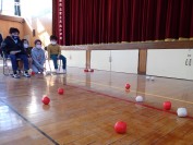 | 6年1組は、「ふじみパラリンピック」と「6-1クイズシアター」の2店です。<左>体育館でパラスポーツ。ボッチャ、車いす卓球・バスケ、シッティングバレーボールに挑戦です。<右>シアターは、学校に関するものと、コロナウイルスに関するものを選べます。クイズに挑戦して新たな発見がたくさんありました。