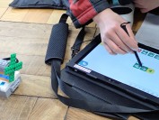 | 昨日の続きです。「人が近づくと扇風機が回転し、しばらくすると停止する」プログラミングに挑戦しました。<左>センサーと通電を制御するプログラム。<右>さらに複雑な回転をさせたり、音楽を奏でたり、自由自在にプログラムをしていたグループもありました。