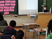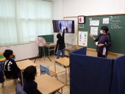 | さくら学級1組の自立活動です。先生方が出演する自作VTRを見て、その場面の状況を判断し、「気持ちを爆発させてしまっている子を見て、どう感じたか」、「怒りの感情を抑えるにはどうしたらいいか」、自分の言葉で考え表現していました。