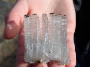 | 今朝は、子供たちも「校庭の筑山が真っ白になっていたよ」とか「岩石園の霜柱がすごいことになってた」とか、自然の変化を感じて、興奮して登校してきました。 <左>子供の手のひらと同じくらいの霜柱。<右>岩石園の一面の霜柱。筑山も真っ白になっていました。 |