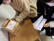 | 2年生が、校内で郵便局の仕事を疑似体験し、働くことの苦労や大切さを知る学習です。本日の給食時間の終わりに各教室に出向いて立派に説明し、上級生からも温かい拍手をもらっていました。明日から校内の4ヶ所に郵便ポストを設置し、2年生が回収し、宛先(各教室)へ届けます。 |