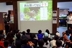 | 両棲類研究所では、発生学・再生学の奥深さに、目を輝かせて聞き入っていました。 |