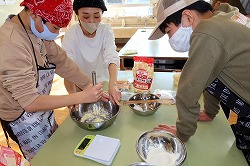 | さくら学級の6年生では、中神駅前にある超人気カフェ“アンポン(Unpont)”のパティシエさんにお越しいただきました。妹がつくる焼き菓子と、兄が淹れるコーヒーが魅力のお店です。今まで子供たちが試行錯誤を繰り返して考案したレシピにアドバイスをいただきながらクッキー作りに挑戦しました。 |