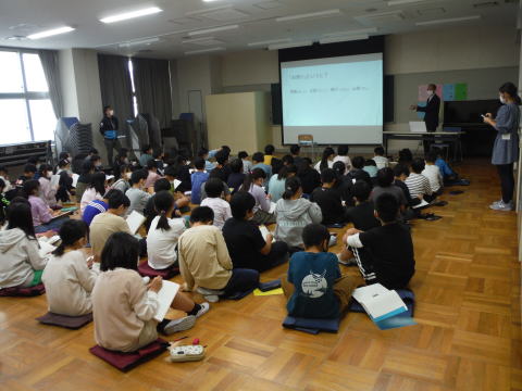 子供たちは、経験をもとにしたお話や、堀込さんが撮影された小笠原村の写真の