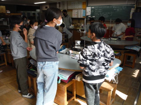 ビーカーの中の水を熱して、湯気やあわの正体について調べる実験をしました。