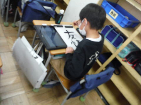 毛筆書写の学習をしました。学年末なので、書きたい字を自分で
