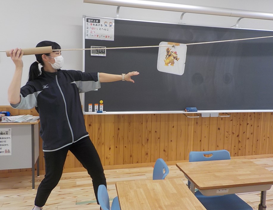 また、準備した道具を使って、行動の調整やバランス感覚、ボディイメージなどを高める運動に取り組み、自分の得意な運動を見付けました。
