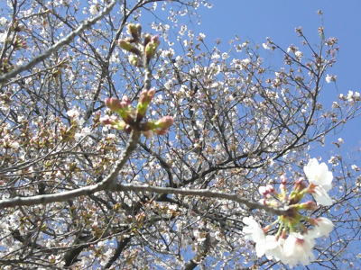 それでも東門付近の桜は、今日明日が見頃のようです。開花の遅かった西側武蔵野の森の桜は、来週の始業式までもちそうです。