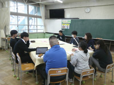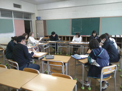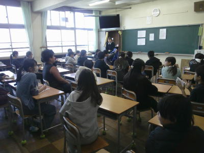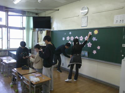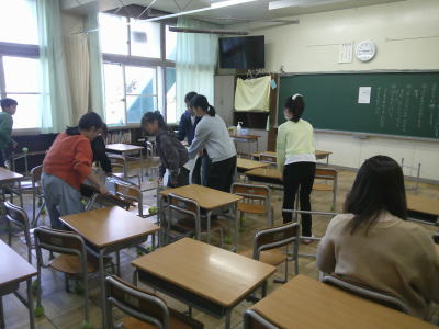 後半は入学式のための準備です。担当の先生の話をよく聞いています。