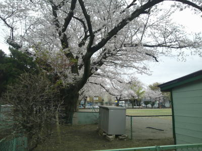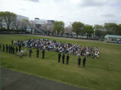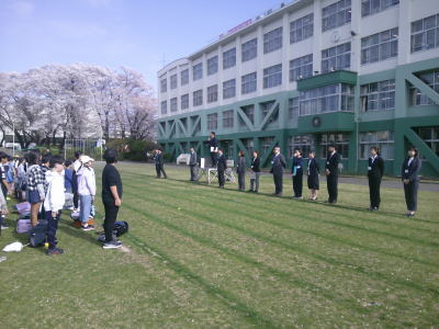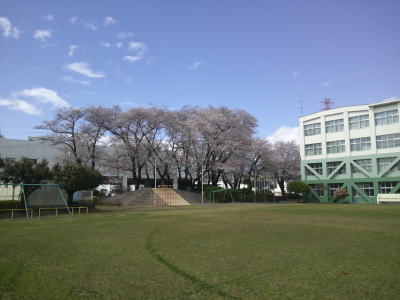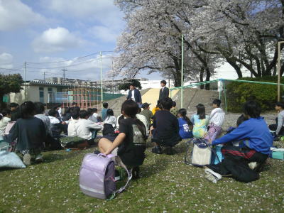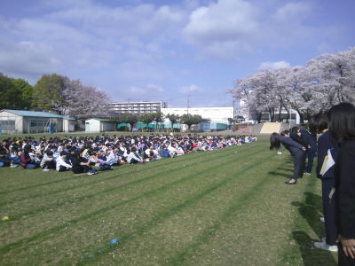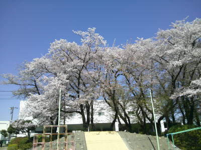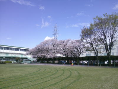 今日は朝から快晴です。まだ残っている校庭の桜もまぶしく光っています。