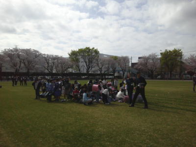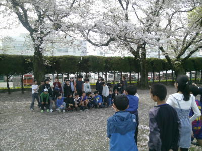桜の花の下でクラス写真を撮る学級もありました。