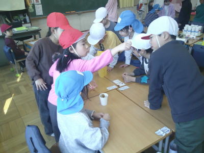 1年生との交流会です。1年生は、来年小学校に入学する年長さんのために、小学校は楽しいところだと知ってもらうために、今日までにいろいろな準備をしてきました。