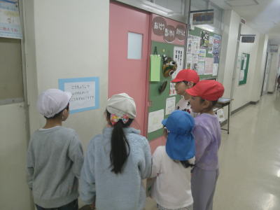 後半は、学校の中を案内してまわりました。小学校のことをたくさん知ってもらい、安心して入学してくれるように1年生はがんばっていました。年長さんたちも、お兄さんお姉さんのいうことをよく聞きながら過ごしていました。元気に入学してきてくれることを楽しみに待っています。