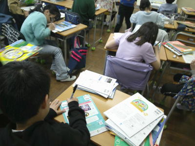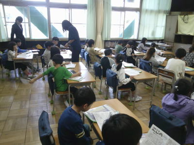 教室を覗くと、それぞれの教室で読書やプリントに取り組んでいました。これなら1年生のお手本になれます。