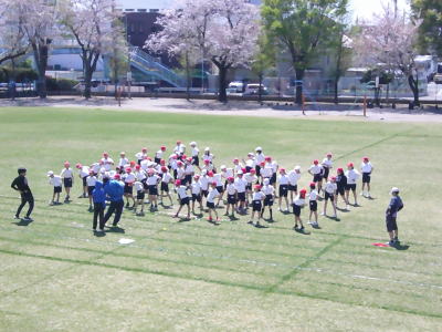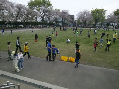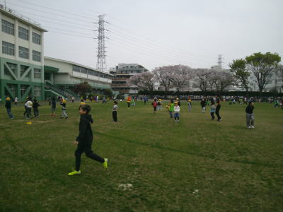 中休み、校庭にはたくさんの子供たちが出てきて体を動かしていました。