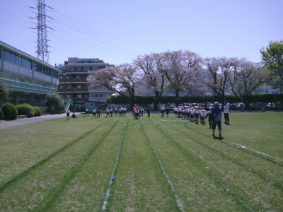 今日は体育も気持ちがよさそうです。3年生は合同体育で短距離走を行っていました。