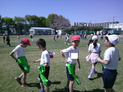 チャイムが鳴ると、けじめをつけて遊びを終えて教室に戻ります。次のチャイムで3時間目が始められるように意識付けをしていきます。
