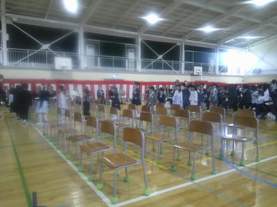 45名の1年生が体育館に入場です。