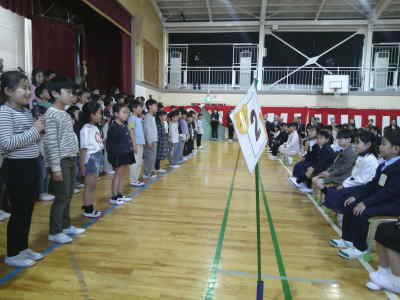 校歌も元気な声で歌っていました。